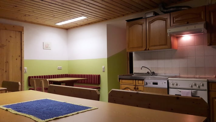 Unser gemütlicher Aufenthaltsraum im Keller bietet viel Platz für gemeinsames Kochen, Spielen oder geselliges Beisammensein – ideal für Gruppen, befreundete Familien oder größere Runden.